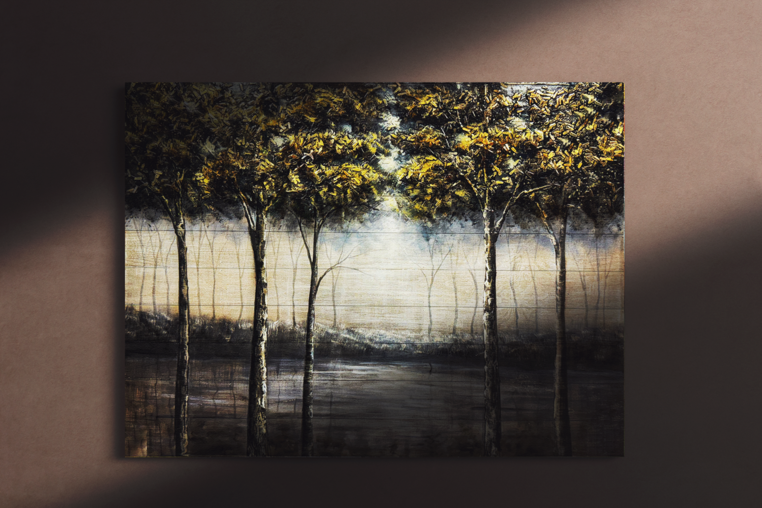 Elevate your interior with this handcrafted 36x48 inch wood panel artwork by Jusbart. Made from solid wood with a rich natural grain, each piece is carefully created to bring texture, warmth, and timeless style to your space. The large format offers a striking presence on any wall—ideal for living rooms, bedrooms, entryways, or creative studio spaces.